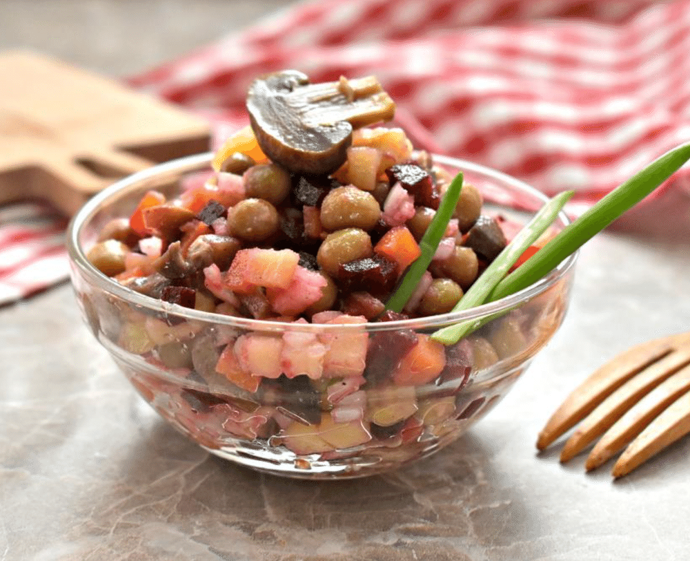 Винегрет с маринованными грибами